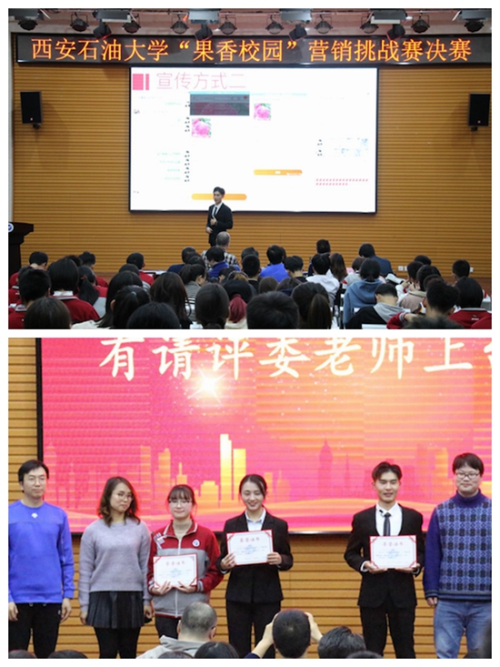 3.增強愛國主義教育,舉辦扶貧類專業競賽。11月18日晚,“守初心、擔使命,師生融合助扶貧——西安石油大學首屆‘果香校園’營銷挑戰賽決賽”在鄠邑校區經管人文樓118多功能廳成功舉辦。時值“不忘初心、牢記使命”主題教育,校團委和經濟管理學院將立德樹人落實到具體行動,積極促成本次活動;企業管理系教工黨支部和企業管理系學生黨支部充分發揮師生融合力,由該系老師作為指導教師,該系學生黨支部協同營銷協會作為活動的組織者,守初心、擔使命,為全校同學帶來了一次鮮活生動的思想政治教育和專業建設活動。活動共吸引全校400多名同學,積極獻計獻策,通過實踐活動服務三農,助力扶貧,彰顯了我校青年學子愛國愛家的優秀品質。據悉,本次比賽,歷時一個月左右,共有來自全校434名同學報名參賽。參加決賽的12支團隊,共銷售蘋果1673余箱,為當地果農增收100380元。
