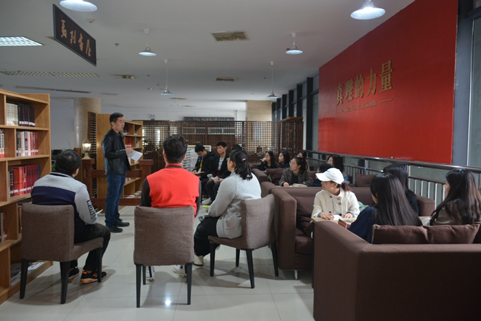 11月15日,學校馬克思主義研習社、各學院馬克思主義研習社學生代表在指導教師馬克思主義學院青年教師孫一仰的帶領下來到鄠邑校區圖書館“馬列書屋”,認真學習了習近平總書記《關于< 中共中央關于堅持和完善中國特色社會主義制度、推進國家治理體系和治理能力現代化若干重大問題的決定>說明》《中共中央關于堅持和完善中國特色社會主義制度、推進國家治理體系和治理能力現代化若干重大問題的決定》和《中國共產黨第十九屆中央委員會第四次全體會議公報》。孫老師要求馬克思主義研習社所有成員要在學生中成為學習全會精神的標兵和帶頭人,積極向身邊同學宣傳黨的十九屆四中全會精神,切實引導全校學生堅定“四個自信”。