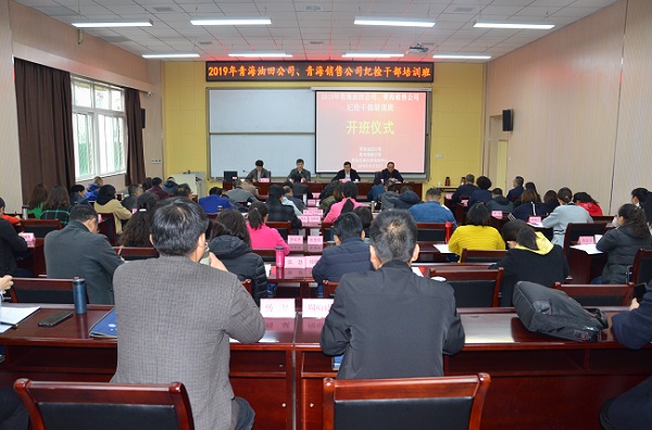 11月12日上午,2019年青海油田公司、青海銷售公司紀檢干部培訓班在我校明德校區培訓中心順利開班。我校副校長楊戰社,青海銷售公司紀委書記王金德、青海銷售公司巡察辦公室主任薛萍出席開班式,儀式由青海油田公司紀委辦公室副處長王占元主持。來自兩公司各單位專(兼)職紀委書記或副書記、紀檢監察干部共65位學員參加開班式。