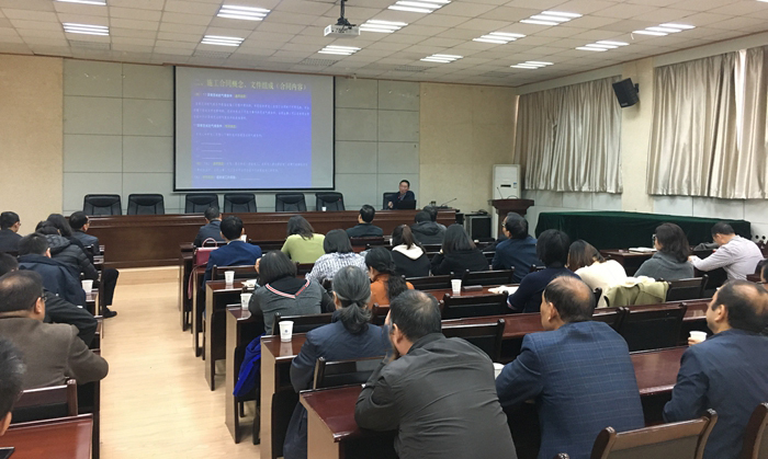 為深入開展“不忘初心、牢記使命”主題教育,進一步檢視問題、整改落實,11月11日上午,基建處以規范建筑工程合同管理為主題召開了集體培訓會。會議邀請西安建筑科技大學碩士生導師、新校區建設工程部總工程師徐雷教授擔任主講。我校副校長楊戰社,基本建設領導小組成員單位負責人參加講座。