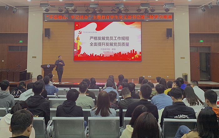 4日至7日,外國語學院黨委書記蔡強老師、計算機學院黨委副書記董春詩老師、學生心理成長指導中心主任肖瓊老師分別為學生黨支部書記作了題為《嚴格發展黨員工作規程,全面提高發展黨員質量》《大學生黨員的量化管理與教育》《聽·愛—人際溝通提升幸福感受》的專題講座。