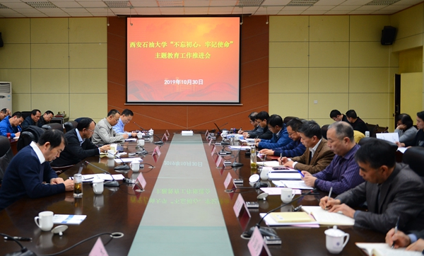 10月30日下午,我校在雁塔校區第一會議室召開“不忘初心、牢記使命”主題教育工作推進會。校長、校黨委副書記、校主題教育領導小組副組長李天太主持會議。