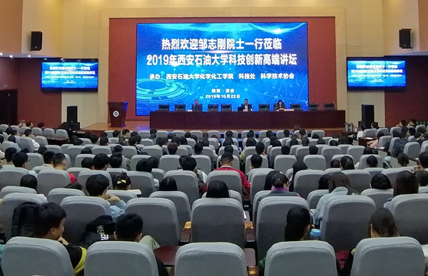 當天下午,我校科技創新高端講壇在鄠邑校區弘石報告廳舉辦,鄒志剛院士、周勇教授出席講壇,化學化工學院院長王文珍主持講壇,化學化工學院研究生、本科生共計400余人參加了講壇。鄒志剛院士從人類社會的能源需求、光催化材料、光催化反應機理以及材料科學在氫能制備中面臨的機遇與挑戰,為同學們介紹了光催化技術是未來的發展趨勢。南京大學周勇教授從溫室氣體造成的影響、CO?氣體排放治理和再生利用以及早期的研究工作三個方面,為同學們作了一場詳實嚴謹的報告。