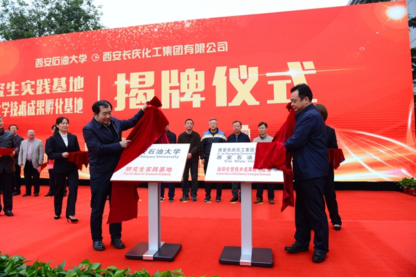 我校校長李天太、長慶油田分公司副總經理石道涵分別代表雙方共同為西安石油大學“研究生實踐基地”及“油田化學科技成果孵化基地”揭牌。