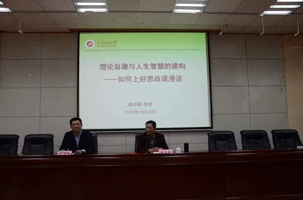 聘任儀式結束后,賴雄麟教授為馬院師生作了題為《理論旨趣與人生智慧的建構——如何上好思政課漫談》的學術報告。他從我們為什么需要思想政治教育、思想政治教育的性質、如何上好思想政治教育三個方面進行了精彩地講解,并與參會師生進行了互動交流。