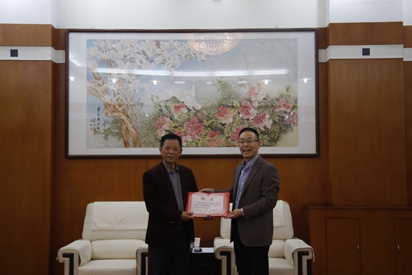 校黨委副書記雷西合對賴雄麟教授的到來表示歡迎,對賴教授受聘為我校兼職教授表示感謝,希望賴教授能進一步提升我校馬克思主義學院的學科建設和教學科研水平,并為賴雄麟教授頒發了兼職教授聘書。