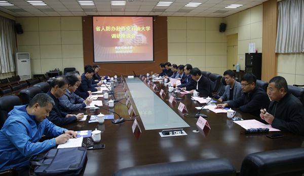 座談會上,李天太校長對王曉馳主任一行的到來表示歡迎,并介紹了學校的基本情況,重點介紹了學校在人才培養模式創新、教學改革、科研服務方面的優勢和取得的成果。接下來,調研組聽取了西安外國語大學基建處負責人和我校基建處、保衛處負責人關于兩校人防工作有關情況的匯報。三方單位并就人防工作的建設、使用、維護等工作進行了深入溝通與交流。