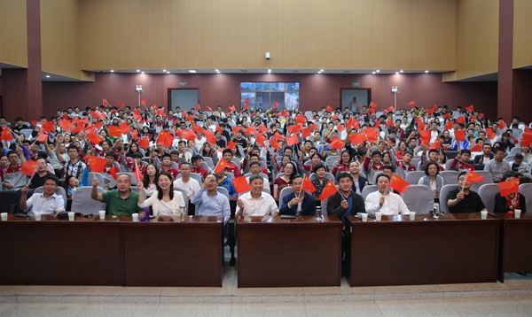 參會師生早早來到會場,在會前觀看了慶祝新中國成立70周年的文獻紀錄片《我們走在大路上》第一集《新中國誕生》,隨后集中收看了慶祝中華人民共和國成立70周年大會,認真聆聽了習近平主席在慶祝中華人民共和國成立70周年大會上的講話,滿懷自豪的觀看了閱兵式和群眾游行活動。