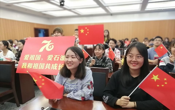 金秋國慶,石大歡騰。為進一步加強愛國主義教育,弘揚愛國主義精神,將學校“不忘初心、牢記使命”主題教育引向深入,10月1日上午,在中華人民共和國成立70周年的喜慶日子里,學校組織召開愛國主義教育集體學習會,黨委書記賽云秀等學校黨政領導同師生一同收看慶祝中華人民共和國成立70周年大會等慶祝活動,共同慶祝新中國七十華誕,共同見證新中國70年輝煌。學校黨委理論中心組全體成員、機關副處級以上干部、馬克思主義學院班子成員和全體教師、學工干部、本科生和研究生代表分別在雁塔校區會議中心學術報告廳和鄠邑校區圖書館弘石學術報告廳、就業指導大廳參加了集體學習會。各院系分別在資料室、會議室及鄠邑校區圖書館南廣場組織師生集體觀看。焊95級、經管2005級的校友趁返校聚會之際,也一起在學校集體觀看。
