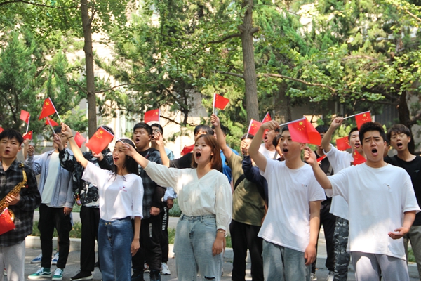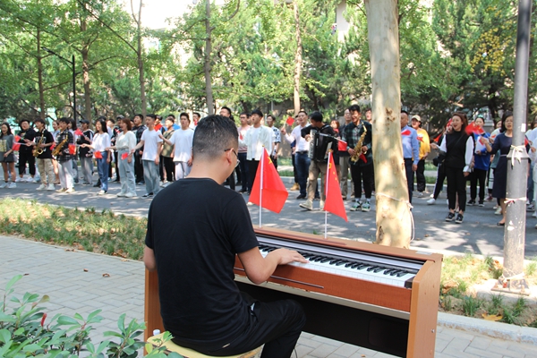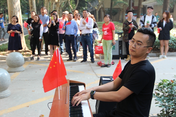 為慶祝新中國成立70周年,9月30日中午,音樂系師生在雁塔校區學生餐廳舉辦“紅歌快閃”活動,吸引了校園中眾多師生全場合唱。