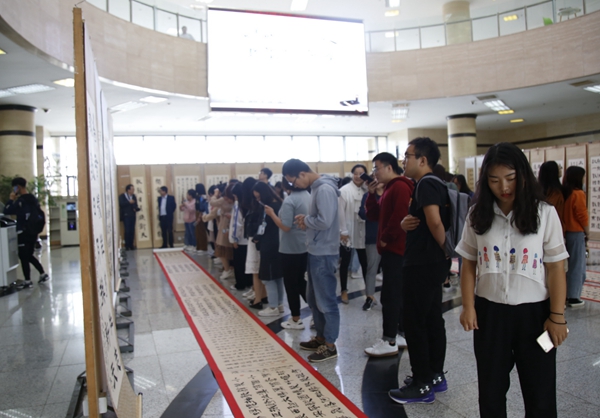 人文學院漢語國際教育2019級研究生鄧小雪表示:“參觀這個展覽我心潮澎湃,我尤其喜歡的是‘孩兒立志出鄉關,學不成名誓不還’這兩句。作為青年學生,我們要立鴻鵠志、做奮斗者,學好本領、全面發展,以后為實現中國夢貢獻力量。”