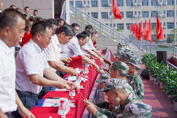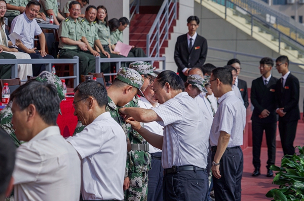 典禮上,陳軍斌副校長宣讀了《西安石油大學關于表彰2019級高國慶等225名本科新生獎學金獲得者的決定》,校領導為獲獎學生代表頒發了證書。同時,為了增強學生的歸屬感和愛校榮校的意識,此次開學典禮還特意舉行了新生校徽佩戴儀式,由校領導為2019級新生代表授予校徽。