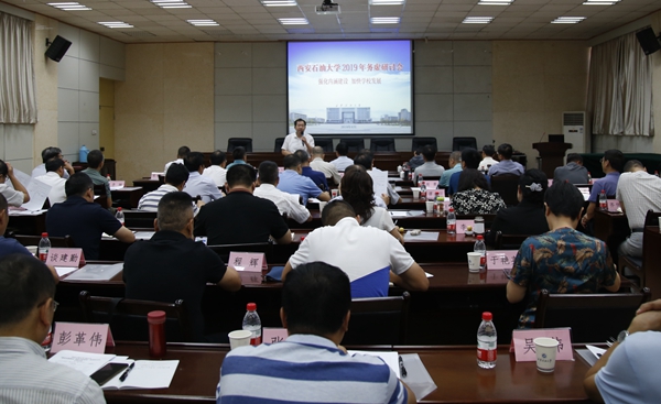 在專題發言環節,會議聽取了16個專題的匯報。由組織部、規劃處、學科建設辦公室、人事處、審計處、紀委監察處、學生工作(部)處、黨政辦公室(穩定辦)、教務處、科技處、國際教育學院、基建處、國有資產處、財務處、后勤管理處的主要負責同志緊緊圍繞學校內涵建設,堅持成果導向,就開展“不忘初心、牢記使命”主題教育、強化監督體系建設、“十三五”規劃實施情況與學校規劃發展、學科規劃與建設、穩定安全體系構建、專業認證、人才培養、科研機制完善、健全學生工作體系、績效工資改革、人才分類評價、國際化辦學水平提升、國有資產效能管理、財務績效管理、鄠邑校區建設、后勤服務保障等方面工作依次作了匯報和交流。過程中,分管校領導就主管單位匯報情況進行了點評和補充,對下一步學校的各項重點工作進一步明確了目標、理清了思路、落實了任務。
