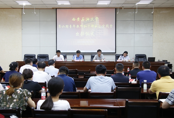 7月10日下午,我校第六期青年教師和干部社會實踐營出征儀式在雁塔校區第三會議室舉辦。副校長楊戰社、蘇文甫出席儀式。黨委組織部、黨委教師工作部負責人及全體參訓學員參加了儀式。黨委教師工作部部長武曉朦主持儀式。