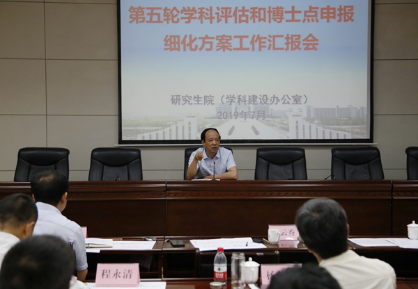 會上,高教研究與評估中心負責人匯報了院(系)發展數據檢測基本信息統計情況。研究生院(學科建設辦公室)負責人匯報了第五輪學科評估準備情況。我校10個學院的14個一級學科負責人依次結合第五輪學科評估和博士點申報細化方案,詳細匯報了各學科細化方案指標定量分析、擬定目標、具體措施及落實完成情況。