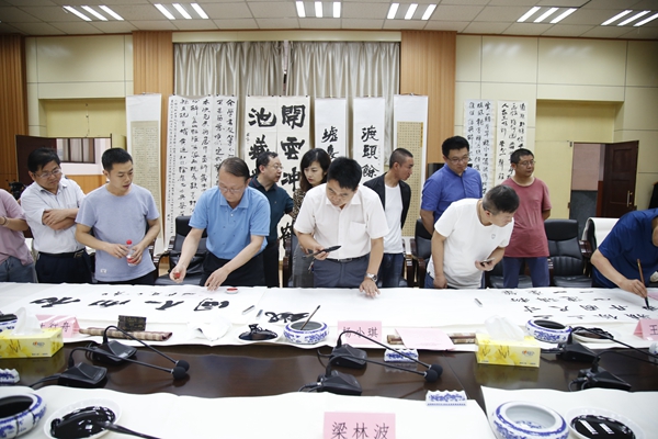 隨后,各位書法名家現場揮毫潑墨,創作了優秀的書法作品,并向學校進行了捐贈。
