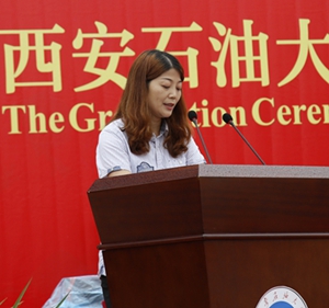 陜西省青年科技新星、校青年拔尖人才、校級優秀教師、機械工程學院崔璐教授代表全體教師向畢業生贈言。她希望同學們一是要心中有愛,以真誠呼喚真誠,用愛心傳遞愛心;二是要保持樂觀堅強的心態,堅信陽光總在風雨后;三是要堅持初心,守住底線,勿以善小而不為,勿以惡小而為之。