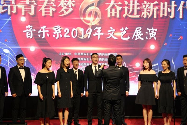 為紀念五四運動100周年,慶祝新中國70華誕,我校音樂系于6月5日、6日分別在鄠邑校區和雁塔校區舉辦了兩場2019年文藝展演。校黨政領導李天太、張木、陳軍斌、蘇文甫、程永清以及部分職能處室負責人,兩校區研究生、本科生、留學生近1000人觀看了晚會。