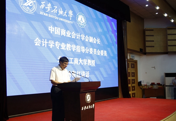 25日上午,開幕式在雁塔校區學術報告廳舉行。中國高等教育學會高等財經教育分會副理事長兼秘書長張國才,中國石油企業協會專職副會長兼秘書長高潮洪,中國商業會計學會副會長、會計學專業教學指導分委員會委員、北京工商大學教授楊有紅,陜西省注冊稅務師協會副秘書長任玉華,西安財經大學校長方明,我校副校長陳軍斌、楊戰社等出席開幕式。特邀嘉賓、媒體記者及參賽師生300余人參加開幕式。楊戰社副校長主持開幕式。