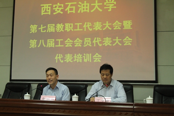 5月24日上午,我校第七屆教職工代表大會暨第八屆工會會員代表大會代表培訓會在雁塔校區第三會議室舉辦。陜西省總工會黨組成員、副主席丁立虎同志為培訓班成員作了《圍繞中心 服務大局 凝心聚力建設高水平大學》的專題講座。校黨委副書記雷西合、“雙代會”各代表團負責人、各部門工會主席及校工會全體人員共80余人參加了培訓。