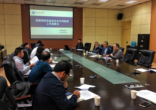實驗室管理處負責人傳達了有關陜西省高校實驗室安全專項檢查的通知文件精神,通報了今年以來學校實驗室安全工作檢查情況以及目前各實驗室還存在的一些問題隱患,并對近期學校實驗室安全工作以及陜西省教育廳專家組即將對我校開展的實驗室安全專項檢查工作作了具體安排。