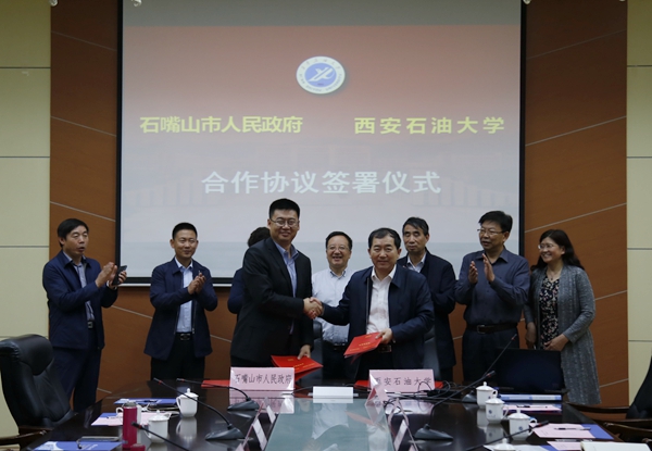 丁秀強副市長和李天太校長分別代表雙方簽署了《石嘴山市人民政府與西安石油大學合作協議書》。