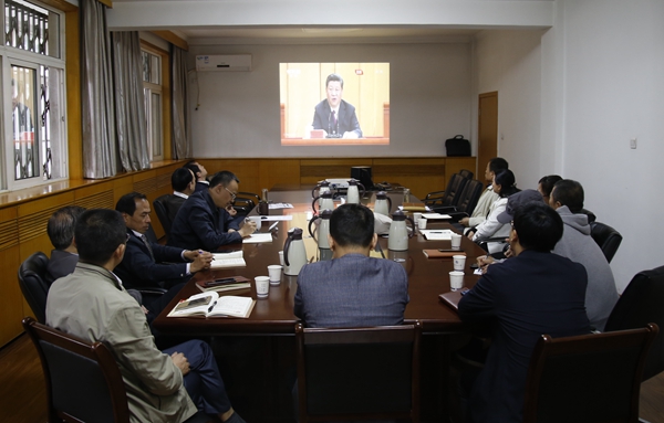 校黨委理論中心組全體成員在行政樓二樓會議室集中收看