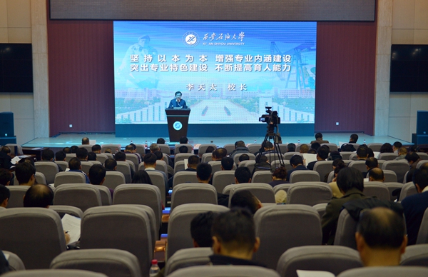 李天太校長作了題為《堅持以本為本,增強專業內涵建設,突出專業特色建設,不斷提高育人能力》的報告。他首先從“人才培養體系進一步完善”“專業內涵建設成效顯著”“教育教學改革扎實推進”“教學管理更加規范”“生源和人才培養質量不斷提高”五個方面,對兩年來的本科教學工作進行了回顧。