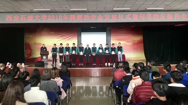 11月9日下午,我校2018年騰輝助學金發放儀式暨何榮校友報告會在鄠邑校區騰輝大學生活動中心舉行。校黨委副書記張木,我校校友、西安騰輝電器有限公司總經理何榮出席活動。學生工作處、合作發展處、機械工程學院負責人,騰輝公司15位員工及600余名學生參加了活動。