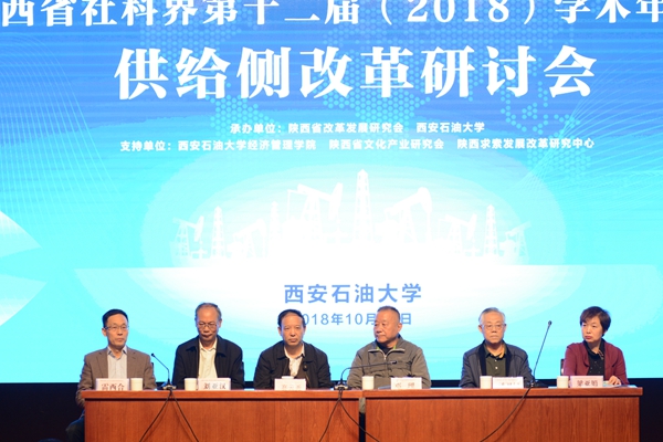 10月28日下午,陜西省社科界第十二屆(2018)學術年會暨供給側改革研討會在我校雁塔校區學術報告廳召開。陜西省改革發展研究會領導、理事、會員,陜西省文化產業研究會理事,省體改戰線的各界領導,相關領域專家學者50余人應邀參加本次研討會。