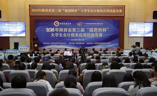 10月27日,由陜西省教育廳高等教育處主辦、西安石油大學承辦、廣州市福思特科技有限公司提供技術支持的2018年陜西省第三屆“福思特杯”大學生會計應用技能競賽暨“貫徹黨的十九大精神,推進財稅技能精準改革”研討會在鄠邑校區舉辦。陜西省財政廳副巡視員王素文,陜西省教育廳高等教育處趙登攀,西安石油大學副校長楊戰社,西安交通大學管理學院會計與財務系主任田高良,陜西財經職業技術學院副校長范忠,廣州市福思特科技有限公司董事長閆曉霞等出席比賽開幕式。我校實驗室管理處處長孟開元主持開幕式。