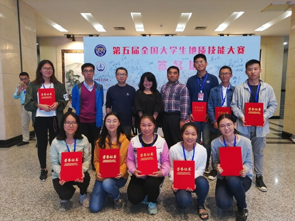 大賽分為地質技能綜合應用、野外地質技能、地質標本鑒定、地學知識問答等四個環節,來自全國64所院校的169支代表隊、507名選手參加了本次競賽。我校學生取得優異成績,與老師們認真負責的指導和同學們的努力密不可分。一年來,地球科學與工程學院的宋立軍、吳少波、田建鋒、賈慧、丁超、魏欽廉等老師帶領同學們進行MAPGIS軟件培訓、安徽巢湖野外技能培訓和巖礦古生物鑒定培訓,為同學們提高實踐能力打下了堅實基礎。當然,成績的取得還離不開中國石油大學(北京)于福生教授及成都理工大學峨眉山地質聯合實習帶隊教師的悉心指導。