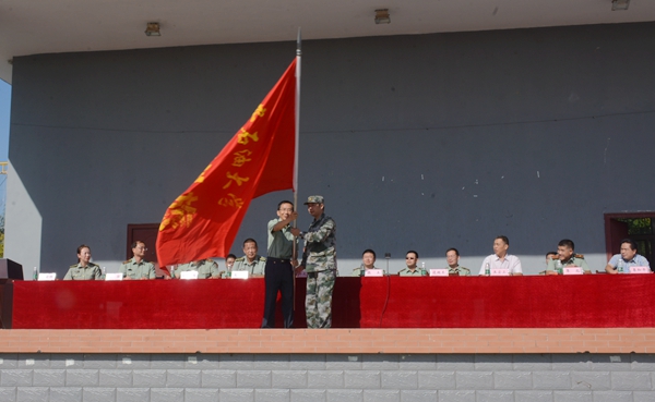 校黨委副書記張木向軍訓旅授旗