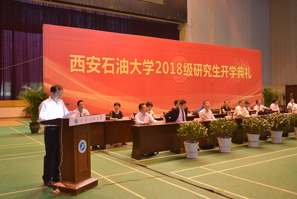 李天太校長在致辭中向新入校的全體研究生表示歡迎,并與新入學研究生一起分享了67年來西石大歷屆優秀校友在奮斗與實踐中譜寫的精彩華章。在新的起點上,李校長向同學們提出了五點要求和希望。一是要志存高遠,胸懷家國天下,努力成為有思想、有溫度、有品質、有家國情懷的科研工作者。二是要勇于創新,不負青春韶華,珍惜時光,勤勉學習,爭取在研究生期間做到“3個50”(即讀50本書、認識50位老師、參加50場活動),爭取早日產出創新性的科研成果。三是要激發興趣,快樂從事科研,體驗解決困難問題的興奮,享受對認定后的學術研究方向執著探求的快樂,注重身心和諧。四是要溝通協作,培養團隊意識,不斷增強與他人合作、善于溝通的優秀科研人才的基本素質。五是要誠信求真,恪守學術良知,守住道德底線,立足自己的研究領域和方向,久久為功,在學術研究和求取真知的道路上行穩致遠。
