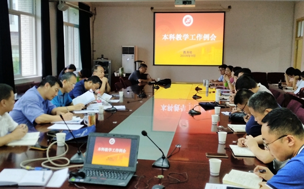 9月5日上午,2018-2019學年第一學期第一次教學工作會議在鄠邑校區辦公樓203室召開。陳軍斌副校長出席會議。教務處、高教研究與評估中心、實驗室管理處及各院(系)相關負責人參加會議。會議由教務處處長徐學利主持。