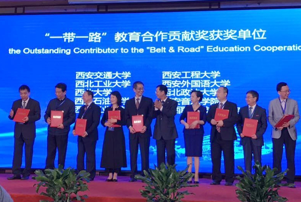 開幕式由陜西省教育廳副廳長趙昶葆主持,省教育廳廳長王建利作主旨發言。陜西省政府副秘書長高陽宣布2018絲綢之路教育合作交流會開幕。大會為10個機構和9位外籍人士頒發了“一帶一路”教育合作貢獻獎,我校及我校俄語外教揚古托娃?麗達?洛別爾托夫娜雙雙獲獎。