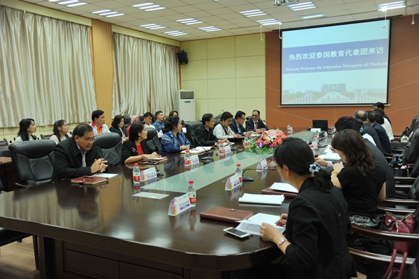 19日下午,雙方在我校雁塔校區會議中心第一會議室召開合作座談會,陳軍斌副校長主持。國際教育學院負責人介紹了我校的國際化發展及國際教育情況。隨后,雙方著重就在泰共建國際教育基地、來華留學專業需求、本科及研究生培養情況、漢語教學管理、教師交流、學生錄取等議題進行了深入交流,并對下一步的合作達成了初步意向。