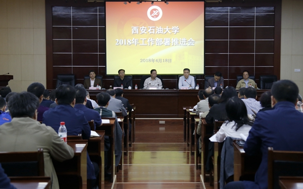4月18日下午,學校2018年工作部署推進會在雁塔校區會議中心第五會議室召開,全體校領導和處級干部參加會議。會議由校黨委書記賽云秀主持。