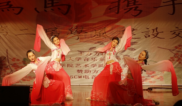 晚會首先由西安文理學院器樂合奏《奇跡》拉開序幕,讓人們遠離都市喧囂,傾聽自然的旋律;我校學生深情演唱的《絨花》,歌頌了英勇偉大的革命先烈,抒發了對他們的真摯緬懷;由我校何云老師編排的古典舞《古韻琴聲》優美婉約,古典大氣;《愛情廢柴》《All I ask of you》等歌曲旋律優美,節奏歡快;街舞《come baby come》、T臺秀、大合唱《友誼天長地久》將晚會推向了高潮,晚會在全場同學的掌聲中圓滿落下帷幕。