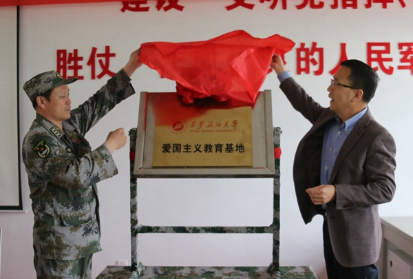 簽約儀式上,校黨委副書記雷西合與32144部隊副政委徐洪剛代表雙方簽署《共建共育協議書》,并共同為“西安石油大學愛國主義教育基地”揭牌。雙方一致同意將通過愛國主義教育基地等多種共建形式,全面開展共建共育工作,進一步做好大學生革命傳統教育和愛國主義、革命英雄主義教育和部隊官兵文化知識、專業技能培訓工作,真正實現資源共享、優勢互補。