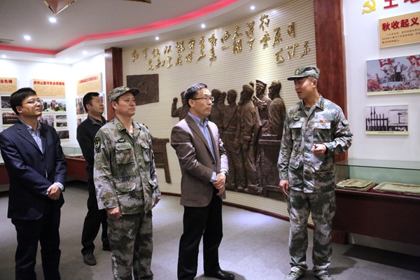 校黨委副書記雷西合、副校長蘇文甫一行9人還在部隊領導的陪同下共同觀看了部隊宣傳片,參觀了開創“支部建在連上”先河的紅一連連史館、連隊榮譽室、官兵宿舍和連隊部分武器裝備。