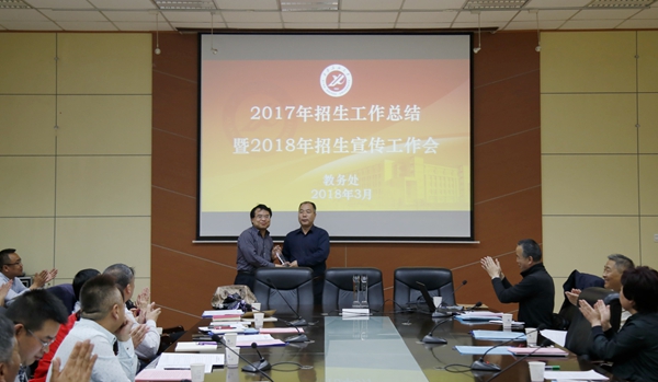 3月28日下午,我校在雁塔校區第一會議室召開了2017年招生工作總結暨2018年招生宣傳工作會。陳軍斌副校長主持會議,教務處、各院(系)及相關職能處室負責人參加了會議。