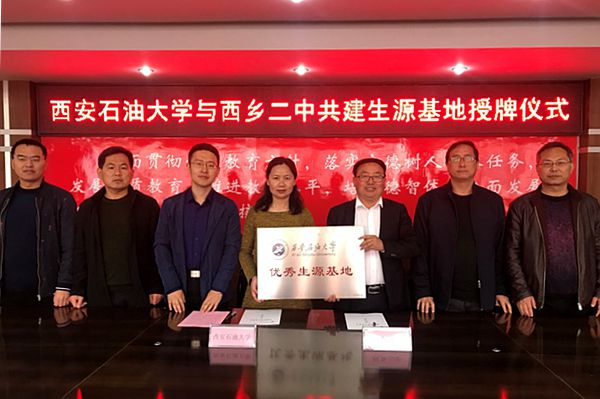 3月26日上午,學生心理成長指導中心主任、馬克思主義學院副院長肖瓊,教務處招生辦公室主任陳熙等一行3人赴漢中市西鄉縣第二中學舉行“西安石油大學優秀生源基地”簽約授牌儀式,并作專題報告。中學校長袁寶平參加了授牌儀式。