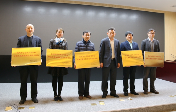 3月21日上午,省教育廳召開陜西省2018年普通高校畢業生就業創業工作會議,安排部署全省2018年高校就業創業工作,并認定了一批“陜西省示范性高等學校畢業生就業創業指導服務機構”。西北工業大學、西北農林科技大學及我校等8所學校的就業指導中心被認定為“陜西省示范性高等學校就業創業指導服務機構”。省教育廳副廳長王紫貴向認定學校授牌,校黨委副書記張木代表學校接受授牌。