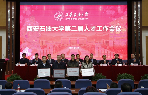 會上,校黨委書記賽云秀,紀委書記李延平,副校長楊戰社、陳軍斌、蘇文甫分別宣讀了學校人才工作先進單位表彰決定和頒獎詞,并為石油工程學院、材料科學與工程學院、化學化工學院和理學院4家人才工作先進單位進行了頒獎。先進單位代表化學化工學院院長王文珍教授、青年人才代表理學院折延宏教授分別作了交流發言。人事處處長程永清匯報了學校“十二五”以來人事人才工作。