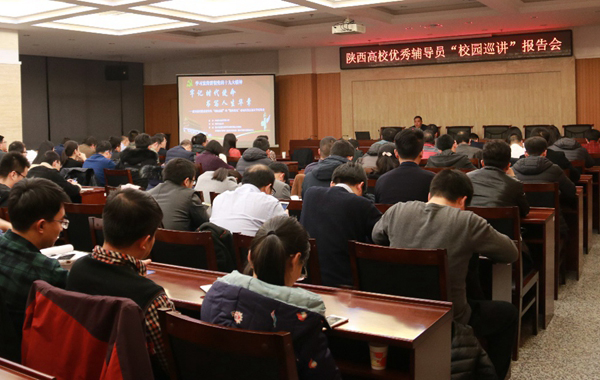 12月13日晚,由中共陜西省委高教工委主辦的陜西高校優秀輔導員“校園巡講”和“網絡巡禮”活動西安石油大學報告會在鄠邑校區圖書館第一會議室舉行。我校全體學生工作干部及學生代表100余人參加了報告會。會議由學生工作部部長王宏衛主持。