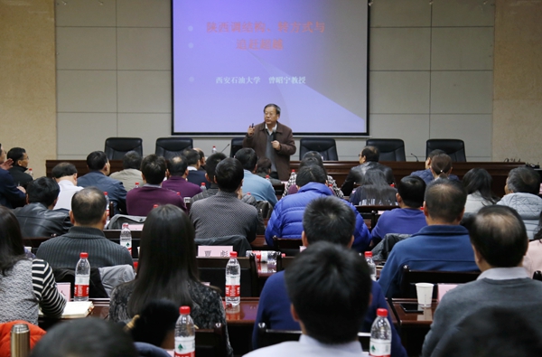 11月30日下午,我校“深入學習黨的十九大精神,全面提升能力素質”處級干部專題培訓班第五講在雁塔校區會議中心第三會議室舉辦。我校經濟管理學院曾昭寧教授應邀作了題為《陜西調結構轉方式與追趕超越》的專題輔導報告。校黨委副書記張木、全校處級干部參加了報告會。報告會由校黨委委員、黨委組織部部長常青林主持。