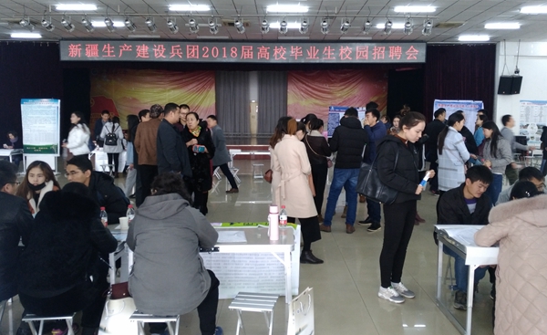 日前,新疆生產建設兵團2018屆畢業生校園招聘會在我校鄠邑校區騰輝大學生活動中心舉行,我校及兄弟院校800余名畢業生參加了招聘會。
