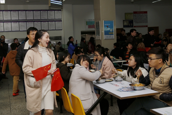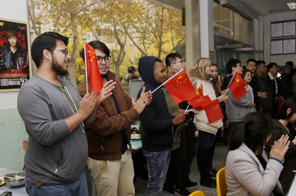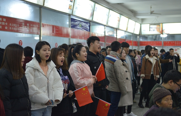 《走進新時代》《歌唱祖國》《茉莉花》……一首首歌曲膾炙人口,耳熟能詳。12月1日中午,由黨委宣傳部、音樂系、國際教育學院、研究生院聯合主辦的“紅歌快閃”歡唱會在雁塔校區學生餐廳舉行。活動吸引了來自哈薩克斯坦、土庫曼斯坦、巴基斯坦、烏干達、坦桑尼亞等6個國家的50名師生參加,他們通過“快閃”“網絡直播”等新穎形式,結合經典紅歌,唱出了對新時代的熱愛,唱響了共產黨好、社會主義好、改革開放好、偉大祖國好的主旋律,令人耳目一新,贏得了就餐師生的陣陣掌聲。