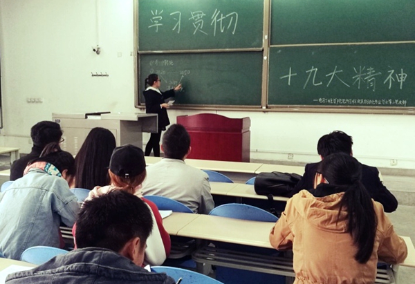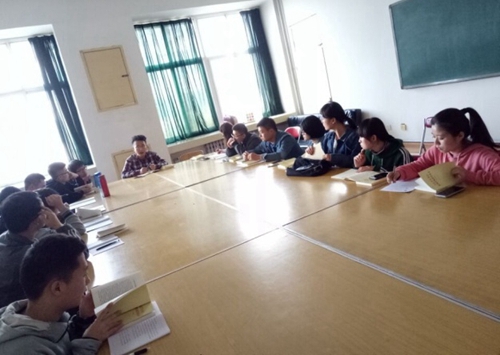 2.通讀原文系統學。黨的十九大開幕后,第一時間將《黨的十九大報告輔導讀本》、《黨的十九大報告學習輔導百問》發放各教職工、學生黨員,并要求各黨支部逐章逐句通讀報告全文,要求各支部書記帶領支部黨員精讀重點內容、導讀主要詞匯、解讀精神熱點,加深對報告的學習領悟。